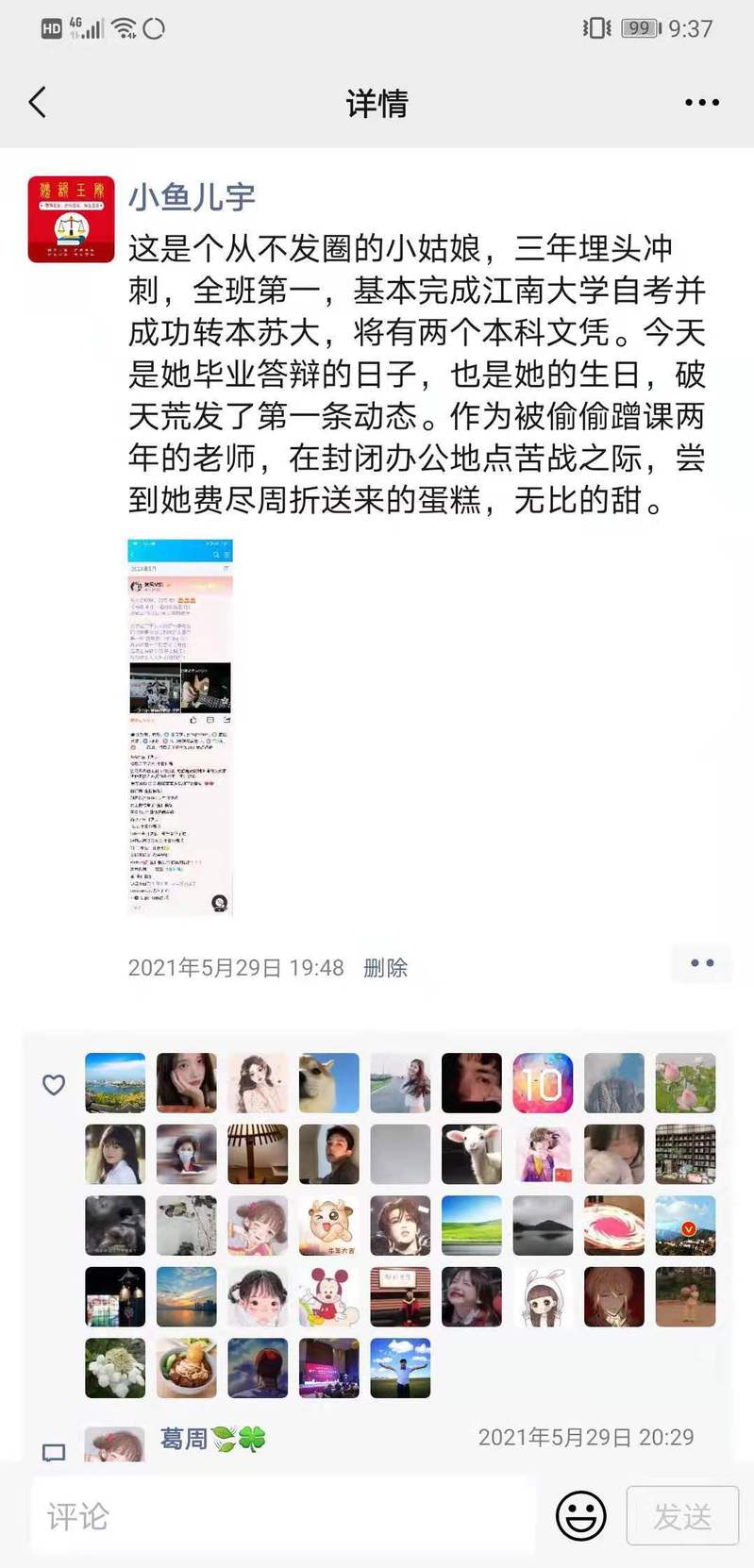 院领导和老师帮助其解决后顾之忧,梁同学一门心思刻苦学习,成绩年年全班第一,两次获评国家励志奖学金,最终考取苏州大学应用技术学院,并修完江南大学相关专业大部分自考课程。今年5月29日是她毕业答辩的日子,也是她的生日,她发了一条朋友圈,并把姐姐从上海寄来的蛋糕送到了陈玉的办公室。“那是我吃过的最甜的蛋糕。”