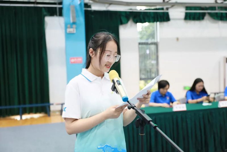 建筑工程学院21设计班范月贤、医学技术学院21护理8班高文萱同学代表表演志愿者分别进行表态发言。