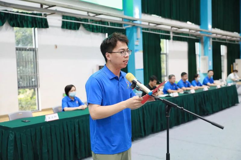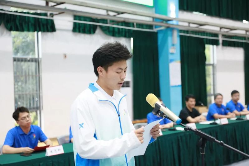 信息技术学院朱志轩老师代表带队教师做表态发言,他表示,在带队过程中一定会提高政治意识,让省运会成为思政课的生动课堂;一定会坚持到底,让志愿精神成为服务省运会的核心动力;一定会加强防疫举措,带领学生平安出征、平安归来。