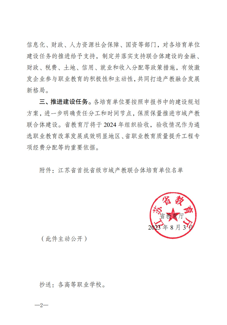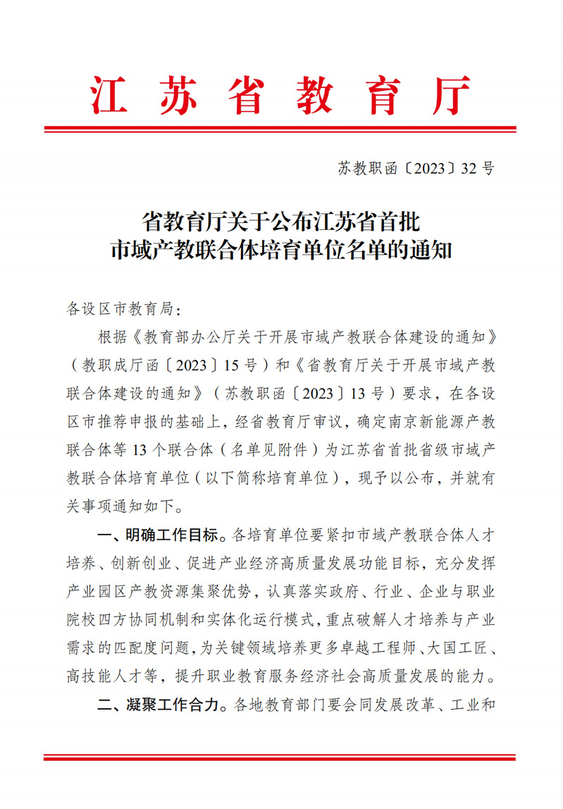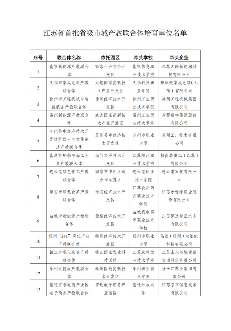 近日,江苏省教育厅正式发文(苏教职函〔2023〕32 号),公布了首批省级市域产教联合体培育单位名单。由我校与扬子江药业集团有限公司牵头,依托泰州医药高新技术开发区成立的“泰州大健康产教联合体”成功入选。