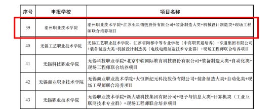 近日,江苏省教育厅公布了《江苏省第一批现场工程师专项培养计划项目和教育部第一批现场工程师专项培养计划江苏推荐项目遴选结果》,我校与上海发那科机器人有限公司联合申报的智能制药系统运维调试工程师、智能制药生产控制系统运维现场工程师,以及与江苏亚星锚链股份有限公司联合申报的数控加工工艺编制及编程现场工程师联合培养项目成功入选江苏省第一批现场工程师专项培养计划项目。