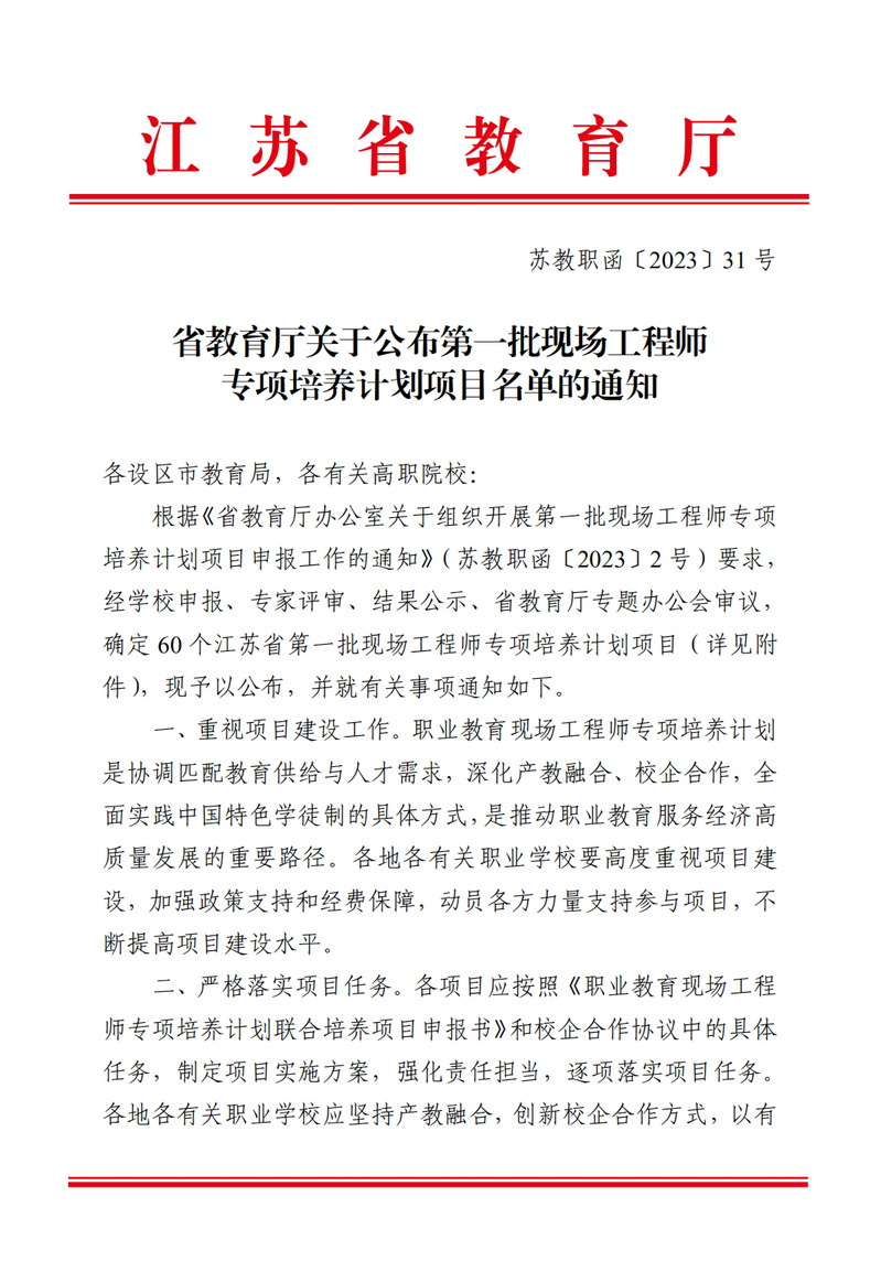 我校获选江苏省第一批现场工程师专项培养计划项目