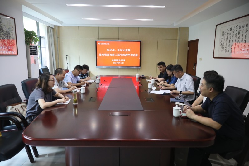 2023年8月18日上午,学校举办陈华北、王宗元老师赴柬埔寨西港工商学院教学欢送会。党委副书记、校长吕林,党委委员、副校长陈芷,党政办公室主任于美华,分院相关领导以及国际交流中心工作人员参加会议。会议由国际交流中心主任尹晓洁主持。