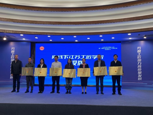 2023年11月10日上午,由江苏省总工会组织的“江苏工匠学院”暨“劳模工匠助企行”专项行动在南京启动。会上,我校成功获批江苏工匠学院。