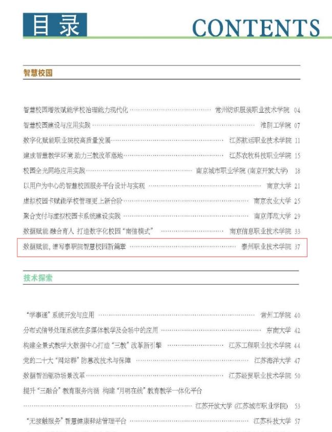 近日,江苏省高等学校教育信息化研究会公布了“《教育信息化探索》——江苏高校教育信息化优秀案例集”的评选结果。我校信息化管理中心提交的案例《数据赋能,谱写泰职院智慧校园新篇章》成功入选首期优秀案例。