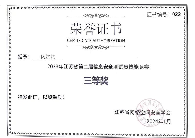近日,由中共江苏省委网信办组织、江苏省网络空间安全学会承办的2023年江苏省第二届信息安全测试员职业技能竞赛在南京举行。此次竞赛吸引了全省高校、院所、企业近500名参赛选手,参赛人数是历年之最。我校信息化管理中心化航航老师经过激烈角逐、层层晋级,最终获得教师组三等奖,这是学校首次参加该类竞赛活动并且获得奖项。