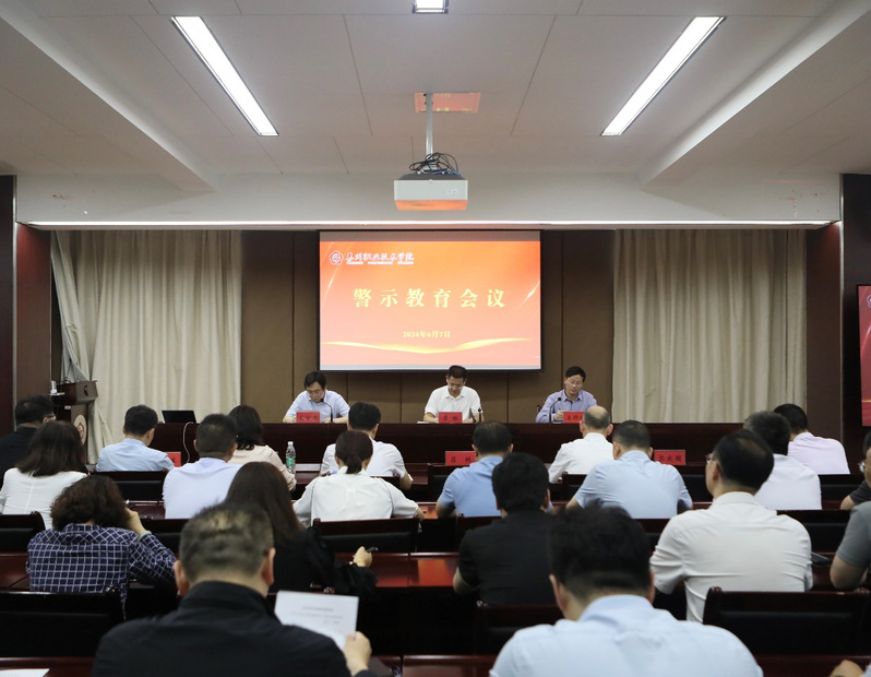 6月7日下午,泰州职业技术学院召开警示教育会议,校党政领导班子全体成员出席会议,会议由校党委委员、纪委书记栾庆国主持。党总支、直属党支部书记,机关各支部书记,新提任干部参加会议。