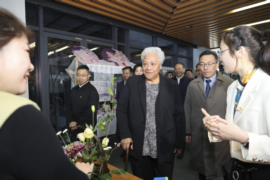 代表团先后参观了我校建筑工程实训中心和艺术学院文创展厅。在建筑工程学院实训中心,外宾参观了现场装备和建筑结构实训设备,听取了我校与正太集团共同设计开发钢制构件、以及双方在校企合作人才培养方面的情况。据了解,正太集团在萨摩亚首都阿皮亚建设了三所小学,助力当地基础教育发展。外宾还饶有兴趣地驻足观看我校学生装配式构建实训课堂,并听取实训中心开设培训项目内容介绍。
