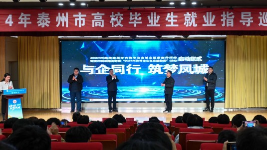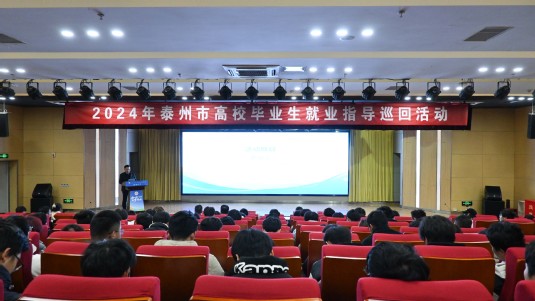 2024年12月4日,学校和泰州市人社局联合举办2024年秋季泰州市高校毕业生就业巡回指导活动暨“优秀企业文化进校园”活动启动仪式。泰州市人力资源和社会保障局三级调研员徐兖兵、泰州市人才服务中心副主任徐迅、校党委委员、副校长李曙生、党委委员、宣传部部长朱杰等出席本次活动。