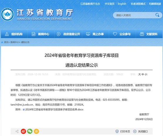 喜报:我校项目入选2024年省级老年教育学习资源库子库