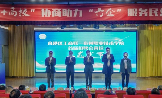 活动开始,李岩等4位老师进行了《一步法有机无机杂化材料合成及其光耦合技术降解药物废水研究》等5个科技项目路演展示;与会领导共同为首届线上招聘会发布岗位360余个;双方签署了《泰州市高港区工商业联合会、泰州职业技术学院全面战略合作协议》;成立了“同心筑梦·爱心助学”基金首批捐赠5万元;最后《扬子江文萃》执行主编翟明进行了“文化润企”主题分享活动。