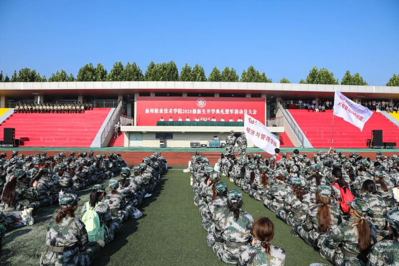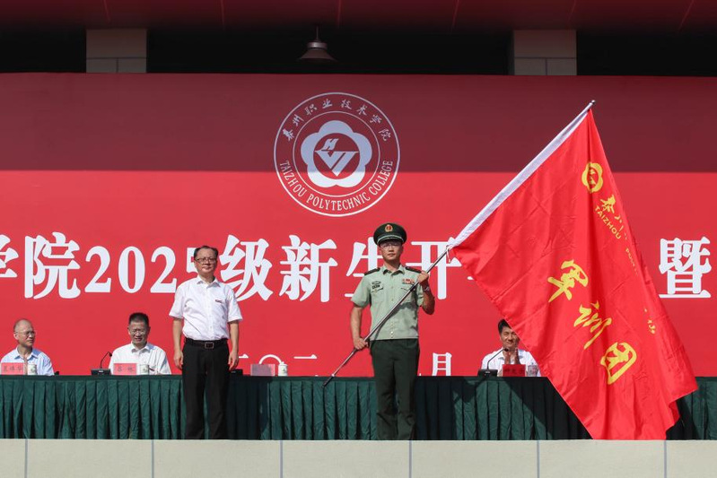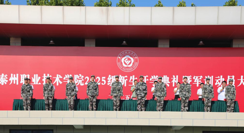 9月16日上午,学校2025级新生开学典礼暨军训动员大会在田径场举行。学校党委书记张涛出席大会并为军训团授旗,党委副书记、校长吕林致辞,武警泰州支队参谋长孔弼文及全体校领导出席大会。大会由校领导钟文乐主持。