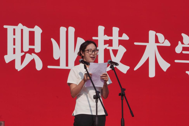 智能制造学院机电一体化技术专业学部教育长王荣老师,城乡建设学院25级智能建造班班主任姜荣斌老师,2025年世界职业院校技能大赛(国赛)铜奖、2025年江苏省职业院校技能大赛一等奖、第十九届“挑战杯”全国大学生课外学术科技作品竞赛江苏省选拔赛三等奖获得者——医学院23药学(2)班袁华娟同学,经济与管理学院25会计(1)班孔思娴同学作为师生代表先后发言。