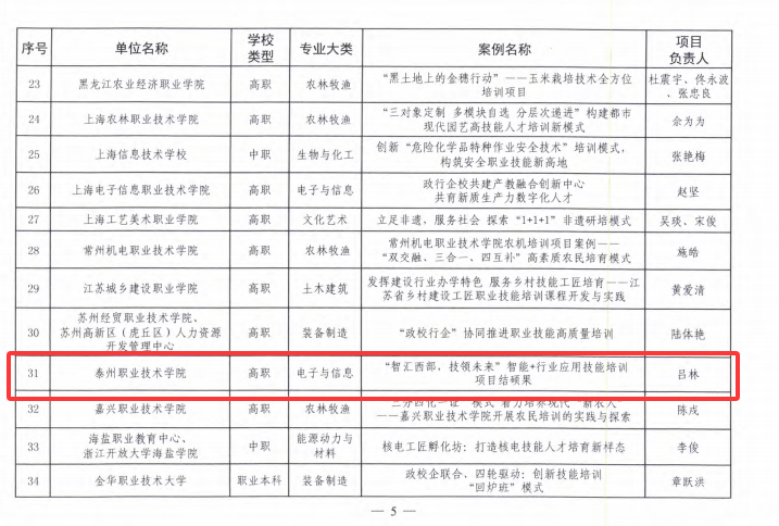 根据教育部办公厅《关于推介职业学校面向社会开展职业技能培训典型案例与优质课程的通知》(教职成厅函〔2025〕21号),我校“‘智汇西部,技领未来’智能 + 行业应用技能培训项目结硕果” 典型案例,将与全国其他优秀案例(全国共106项,江苏省仅4项)一同在中国职业教育与成人教育网等权威平台进行宣传推广。